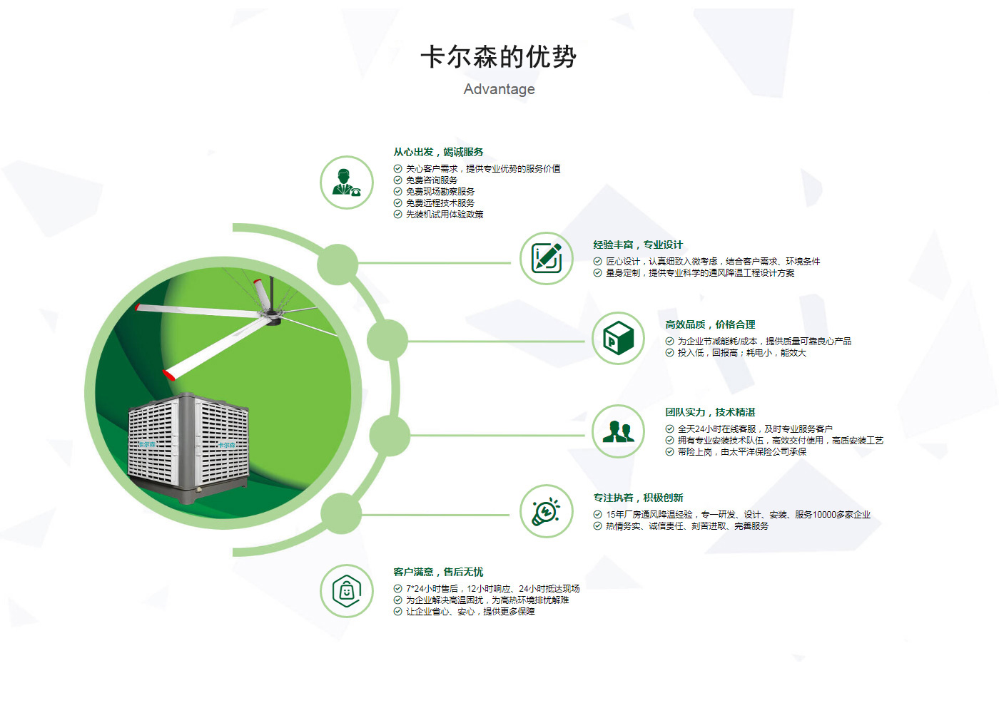 ??晉江市卡爾森機(jī)電設(shè)備有限公司是一家集設(shè)計、制作、銷售、安裝工業(yè)通風(fēng)設(shè)備、中央空調(diào)、節(jié)能環(huán)保空調(diào)、脈沖除塵設(shè)備、環(huán)境凈化工程、等環(huán)保工程企業(yè)。并提供環(huán)境影響評價、環(huán)保工程總承包、環(huán)保工程設(shè)計、環(huán)保工程運(yùn)營、環(huán)保工程成套設(shè)備等一站式服務(wù)。公司一直誠心服務(wù)于工業(yè)廠房的通風(fēng)設(shè)施,我們的產(chǎn)品:“品種齊全、質(zhì)量優(yōu)越”。根據(jù)客戶的需求精心設(shè)計,高質(zhì)量的制造,力求使每個產(chǎn)品都達(dá)到合理耐用、節(jié)能環(huán)保。科學(xué)的設(shè)計和精美高品質(zhì)的產(chǎn)品,完善的服務(wù)系統(tǒng),加強(qiáng)售前、售中、售后服務(wù),對顧客在使用商品中出現(xiàn)的各種問題及時解決,使顧客無后顧之憂。產(chǎn)品廣泛適用于各類型制造業(yè)、機(jī)械類、五金冶煉、食品、化工、電子、紡織、噴涂、娛樂以及服務(wù)等場所。我們秉承“質(zhì)理過關(guān)、價格合理、交期準(zhǔn)時、服務(wù)周到”而受到新老客戶的好評和信賴。我們堅持“客戶至上、質(zhì)量上乘”為宗旨,努力工作,為您換來潔凈美好的明天。卡爾森愿以過硬的質(zhì)量,良好的信譽(yù)同各界朋友一起開創(chuàng)更加輝煌的未來。